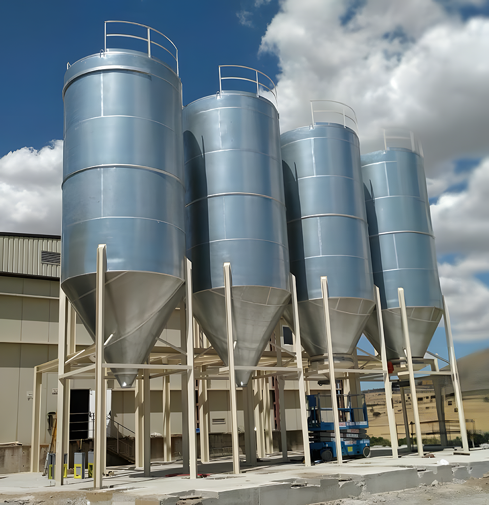 Producimos silos para productos sólidos y líquidos, silos desmontables, ciclones, tolvas, depósitos, acumuladores de agua caliente para invernaderos, estructuras de soporte para tuberías y otras estructuras metálicas industriales.
