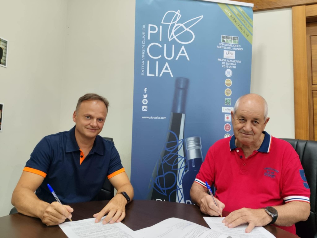 El presidente de Picualia, Gabriel J. Alonso; y el coleccionista Antonio Almagro han firmado el acuerdo de colaboración que garantiza la cesión de dicha colección a la cooperativa.