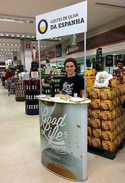 Por otro lado, la Embajada ha ido acompañada de una serie de acciones promocionales en la ciudad de Sao Paulo, donde varias grandes superficies de la ciudad han acogido los estands de Aceites de Oliva de España, en los que un promotor invitaba al público a probar los vírgenes extra de nuestro país, entregando información sobre el producto y la iniciativa The Good Life Embassy.
