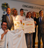 20/04/2016 - La Carpa de Jugadores del Santiago Bernabéu de Madrid fue ayer testigo de la final nacional del Concurso de Aceituning Jóvenes Autores, edición 2016, que ganó Javier Román, de la Escuela de Hostelería de Toledo, con su aliño "Aceitunas rellenas de conejo con ajos de Las Pedroñeras"