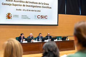 Tras la inauguración de la Asamblea, Wenceslao Moreda y Diego L. García, del IG-CSIC, expusieron el “Proyecto Europeo Horizonte 2020 Oleum: Soluciones avanzadas para asegurar la autenticidad y calidad del aceite de oliva, 2016-2019”, cuyo fin es investigar para aumentar la calidad del aceite de oliva en Europa.