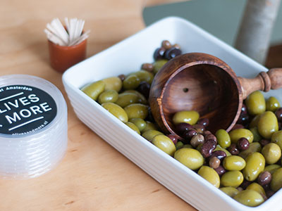 Situada en el eastside de Amsterdam, en Olives & More se pueden encontrar alrededor de 15 variedades mediterráneas de aceituna procedentes de Grecia, Portugal, España, Italia, Marruecos, Túnez y Francia, así como AOVEs de Cataluña (España), Douro (Portugal), Molise (Italia) o Creta (Grecia), además de otros productos con los que Brian, el chef de Olives & More, elabora deliciosos tapenades, pesto y aderezos. Pero eso no es todo: todos los meses, Brian prepara una gran mesa redonda en la tienda donde los vecinos del barrio pueden probar diferentes creaciones elaboradas con los productos a la venta, en especial las aceitunas y los aceites de oliva vírgenes extra, mientras Esther selecciona el vino más adecuado para cada plato y las conversaciones -y nuevos contactos- surgen con fluidez. Olives & More suministra sus aceitunas, aceites de oliva y productos caseros a numerosos establecimientos de la zona, entre ellos varios restaurantes con estrellas Michelin -como The Jane Restaurant en Amberes, elegido como el restaurante más hermoso del mundo-, a los que les ofrece un AOVE exclusivo embotellado y etiquetado especialmente para cada cliente.