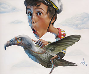 Para esta particular ocasión, Belin ha cedido cuatro obras a la firma de AOVE de Jaén, una para cada una de sus variedades. Estas obras forman parte de una colección muy especial para el artista que se aglutinan bajo el nombre “Los Viajes de Bruno” donde se puede ver a Bruno en situaciones rurales y reconocibles. El gesto, la expresión y la composición de colores parecen corresponderse con la compleja paleta de sabores de la marca de aceite de la Cooperativa San Juan.