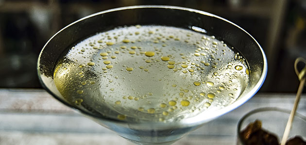 Ingredientes: 10 cl. de cordial de té verde, té negro, coco, higo y jazmín; 5 cl. de ginebra infusionada con AOVE cornicabra.