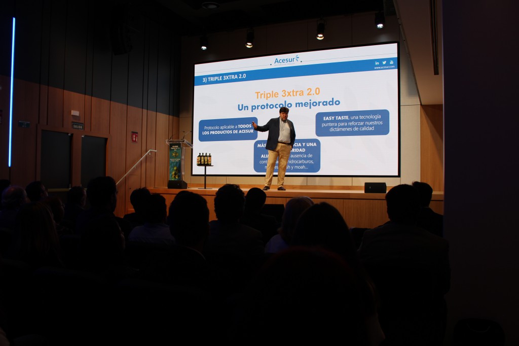 Acesur ha presentado Calidad Triple 3Xtra 2.0, "un procedimiento basado en la autoexigencia, ya que mejora en un 20% los baremos de calidad exigidos por la ley para ofrecer al consumidor más sabor y una garantía de origen y calidad, siendo transparentes con la trazabilidad del aceite de oliva", según ha precisado la empresa. El acto de presentación de estos avances ha tenido lugar hoy en Madrid y ha contado con la intervención de Gonzalo Guillén, director general de la compañía; y Carlos Jiménez, director de Operaciones de Acesur.
