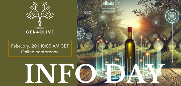 En concreto, "Info Day On Line. Herramientas digitales para la olivicultura", que tendrá lugar el 20 de febrero, se centrará en mostrar cómo las herramientas digitales desarrolladas en GEN4OLIVE pueden apoyar a todos los grupos de interés en la olivicultura, permitiéndoles conocer más a fondo este cultivo y facilitando la toma de decisiones estratégicas en la planificación y gestión de plantaciones y en los proyectos de investigación y desarrollo.