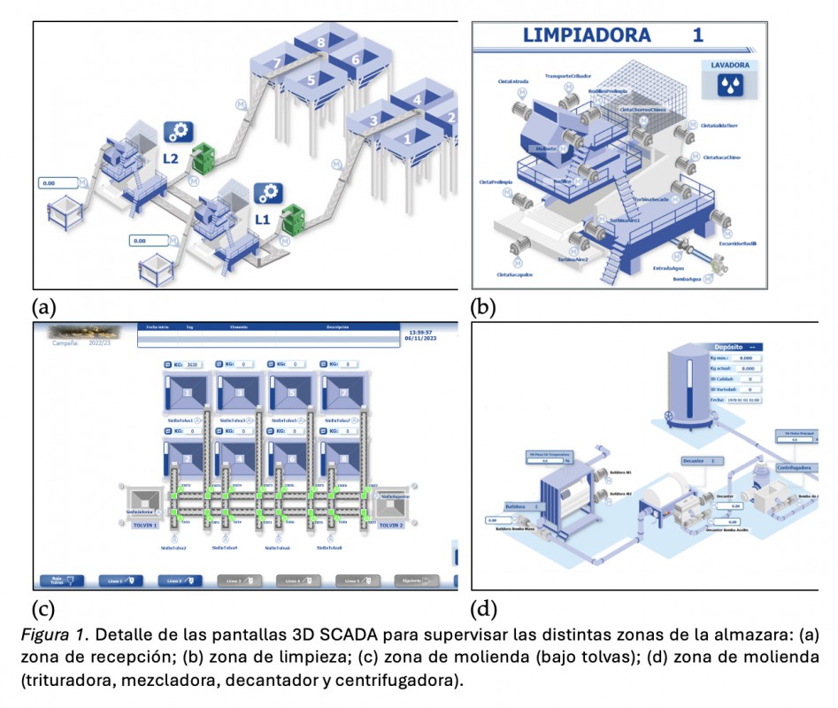 En el caso concreto analizado, en el ámbito del proyecto Smart-o-live, se ha desarrollado un sistema ciberfísico que integra un gemelo digital con un sistema SCADA (Supervisory Control And Data Acquisition) en 3D para una almazara. Este sistema recopila datos en tiempo real a partir de sensores instalados en la maquinaria de la almazara, permitiendo la supervisión y el análisis del proceso productivo.