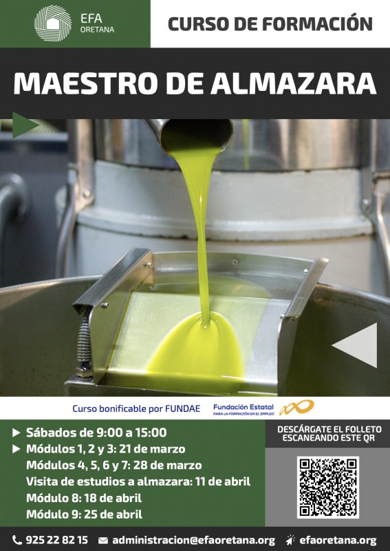 El curso -que se desarrollará los sábados de 9 a 15 horas- está dirigido a profesionales que están trabajando en almazaras y que quieran mejorar, o a personas interesadas en conocer el oficio para un futuro trabajo en este sector.
