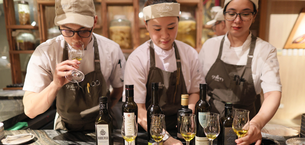Asimismo, Rosa Vañó, directora comercial de Castillo de Canena, habló del recorrido del aceite de oliva virgen extra en la historia de la cocina española y de cómo en los últimos años ha acompañado también las revoluciones y a la vanguardia. El público reaccionó con verdadero interés a este producto; tanto en la ponencia de Rosa Vañó como en la cata posterior que ofreció junto a Alfonso J. Fernández, maestro de ceremonias, pero también catador internacional y consultor del sector oleícola. “Creo que me han creado una necesidad. Necesito tener muchas variedades de AOVEs en mi cocina”, dijo Meggie Ong, directora comercial de Terry’s, una de las más importantes importadoras de vinos, aceites y alimentos Premium en España, además de propietaria de un restaurante de cocina española.