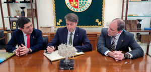 El rector de la Universidad de Jaén (UJA), Nicolás Ruiz, recibió ayer la visita del CEO de Gruppo Pieralisi, Aldino Zeppelli, con quien mantuvo una reunión de trabajo en la que abordaron acciones para fomentar la colaboración entre ambas partes en materia de I+D+i.