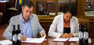 La rectora de la Universidad de Granada, Pilar Aranda; y el presidente del Consejo Regulador de la DOP Sierra Mágina, Salvador Contreras, suscribieron el pasado 10 de julio un convenio de colaboración con el objeto de cooperar en actividades, científicas, técnicas, culturales y académicas sobre los efectos beneficiosos sobre la salud del consumo de aceite de oliva.